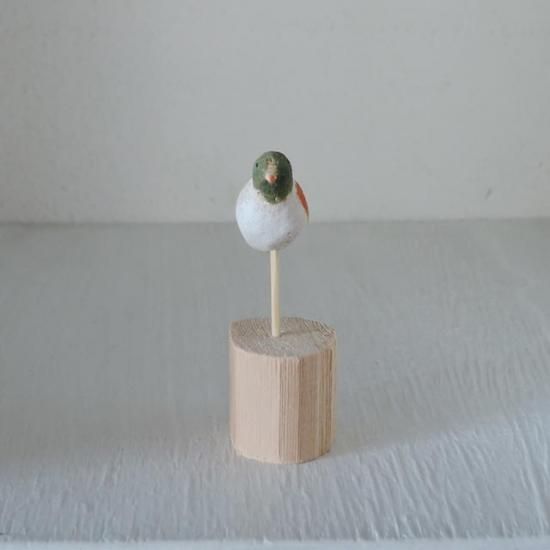 茅木日出男「鳥」(小・顔グリーン・羽オレンジ)