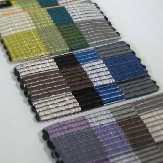 直輸入の色数豊富でクオリティの良い糸を使って手織りをしています。リップス織(畝織)という技法で、経糸を効果的に見せ、緯糸は撚りの強い太いジュートと細い綿糸を交互に織り、丈夫に仕上げました。